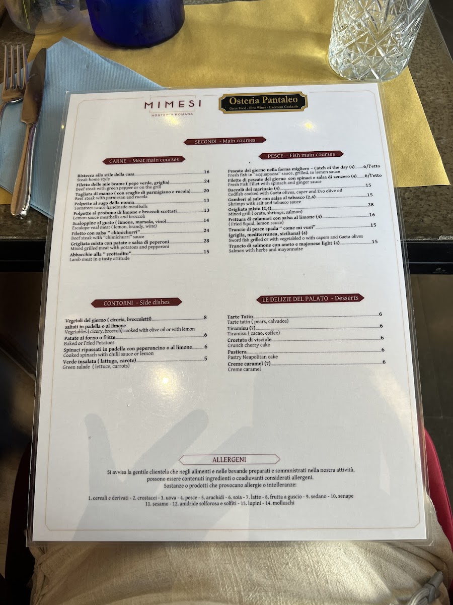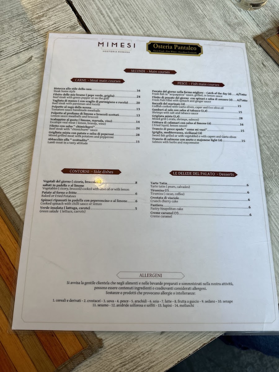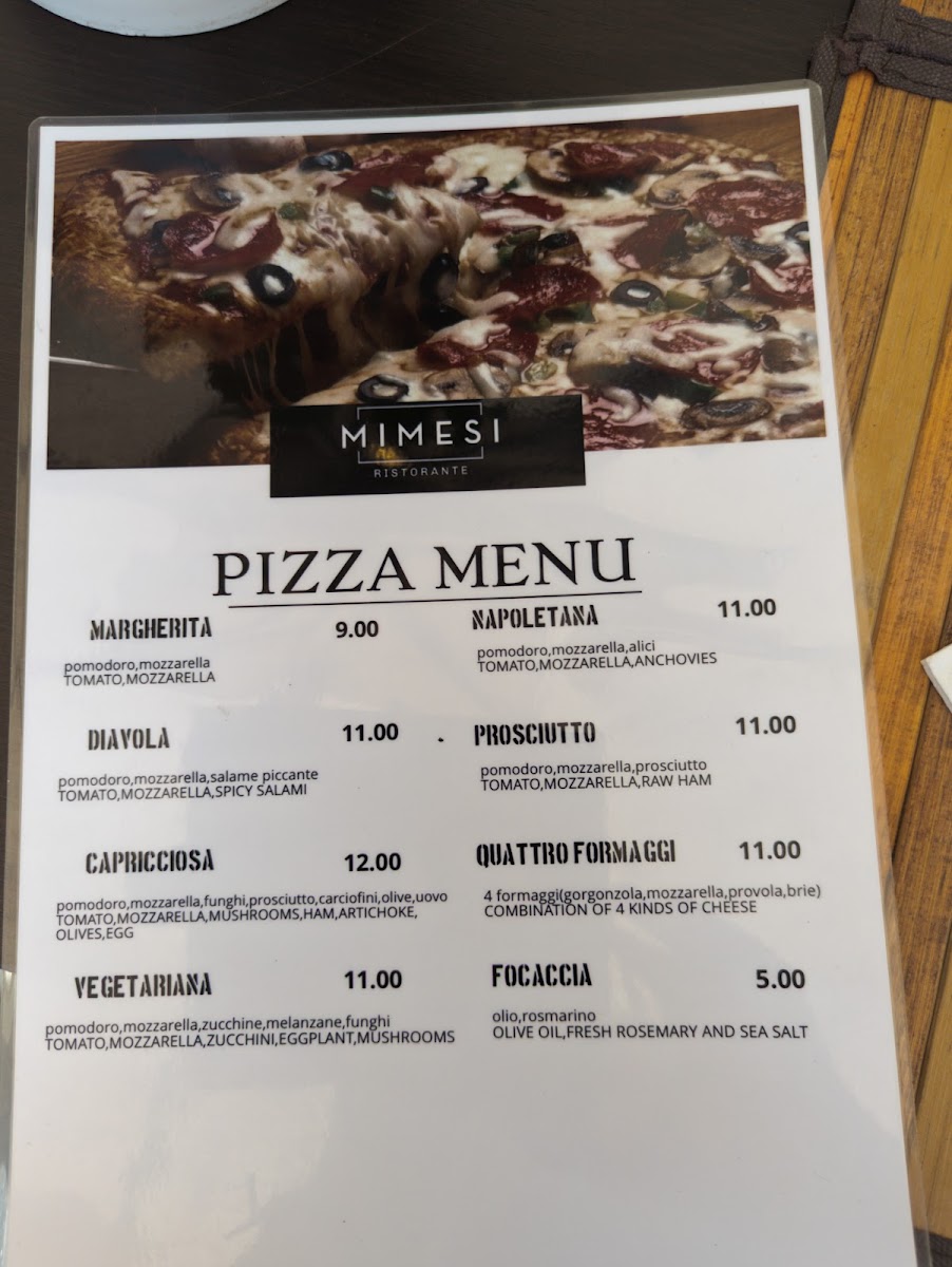 Ristorante Mimesi Menu