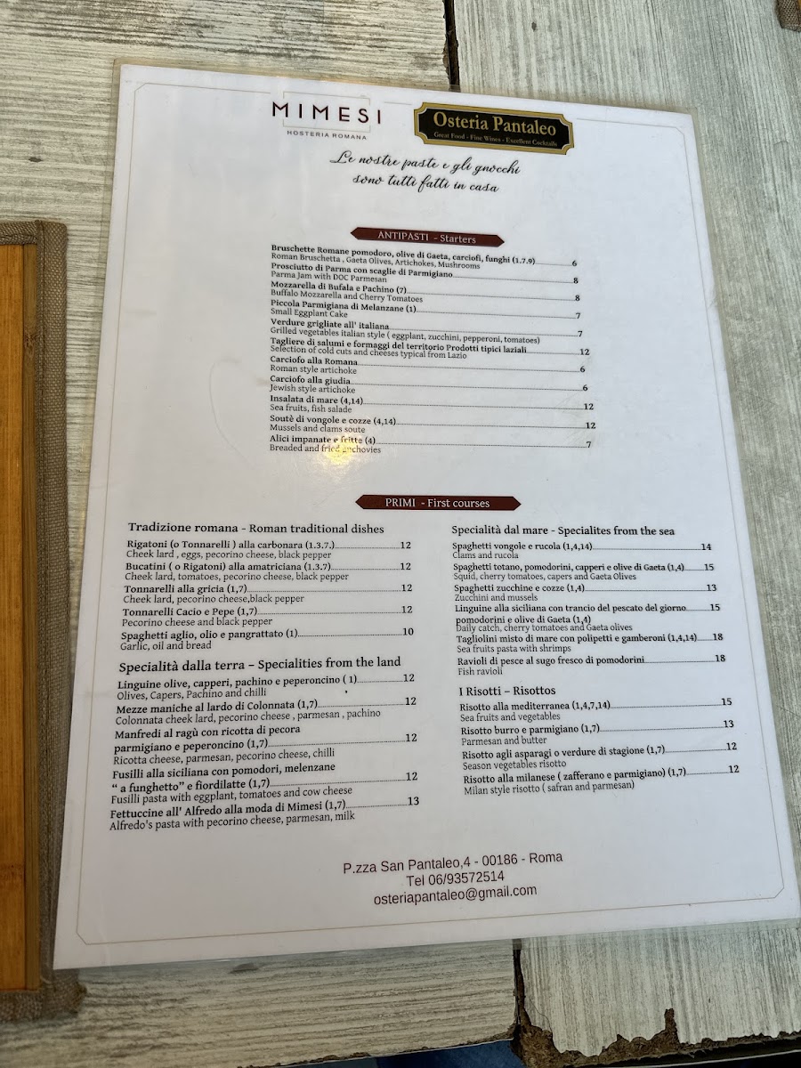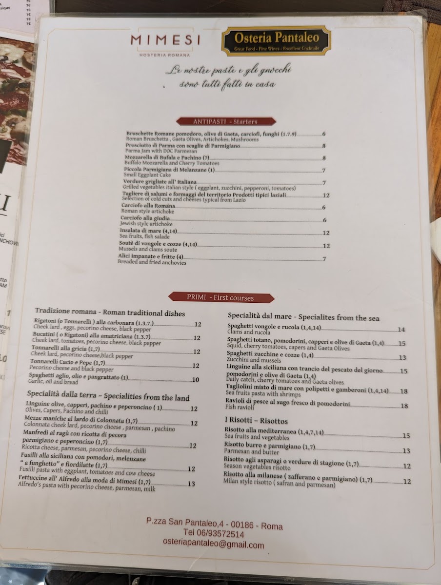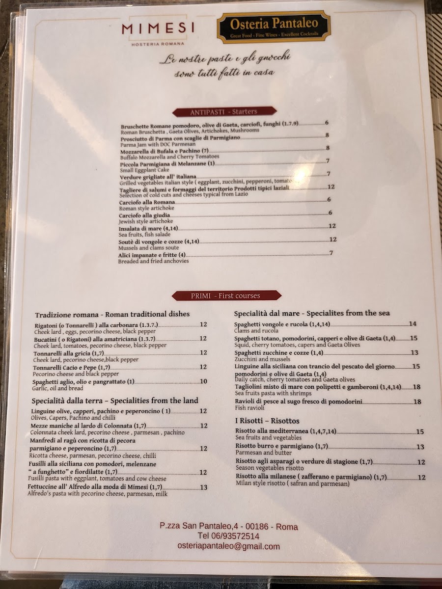 Ristorante Mimesi Menu